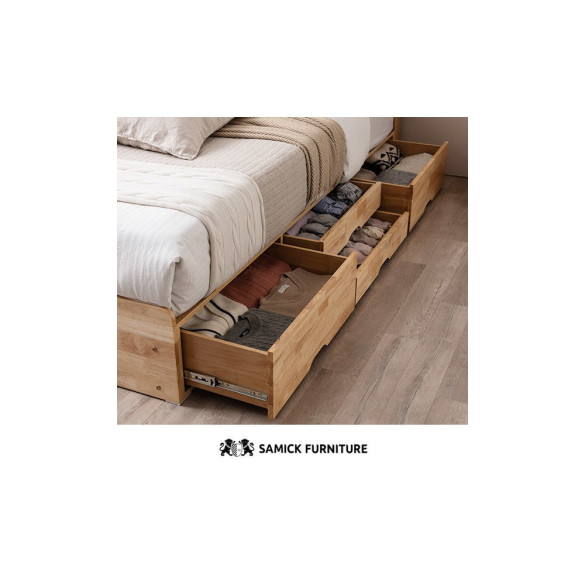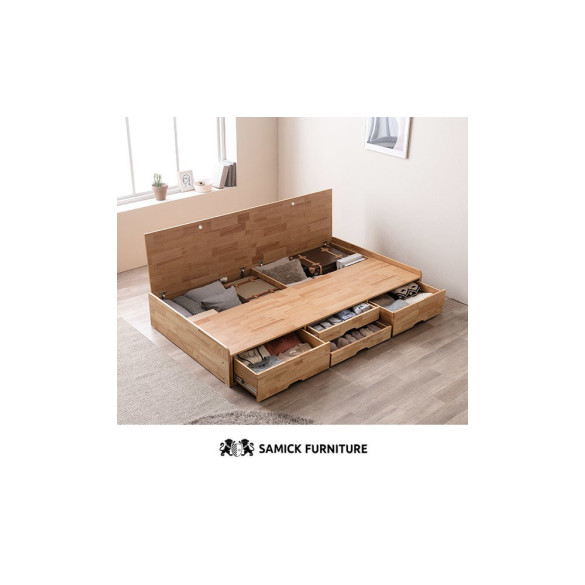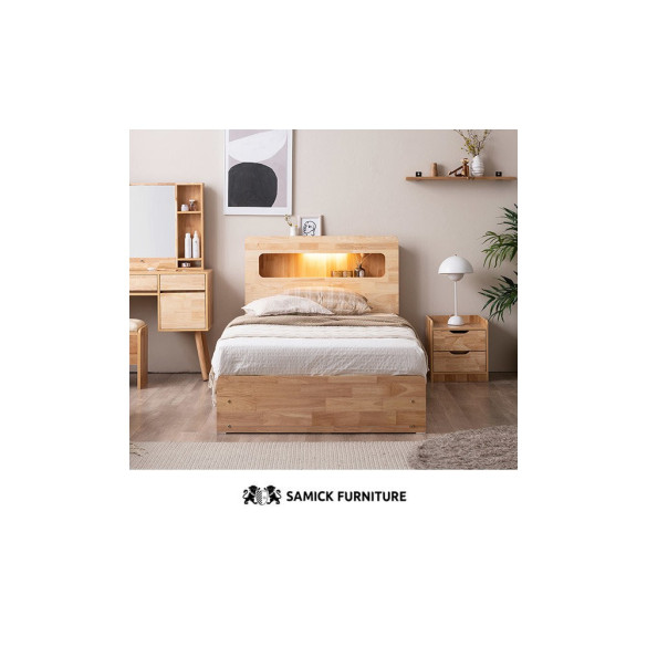 • (쿠폰할인 33.9)포텐 LED 4단 수납 원목 침대(양모 라텍스 7존